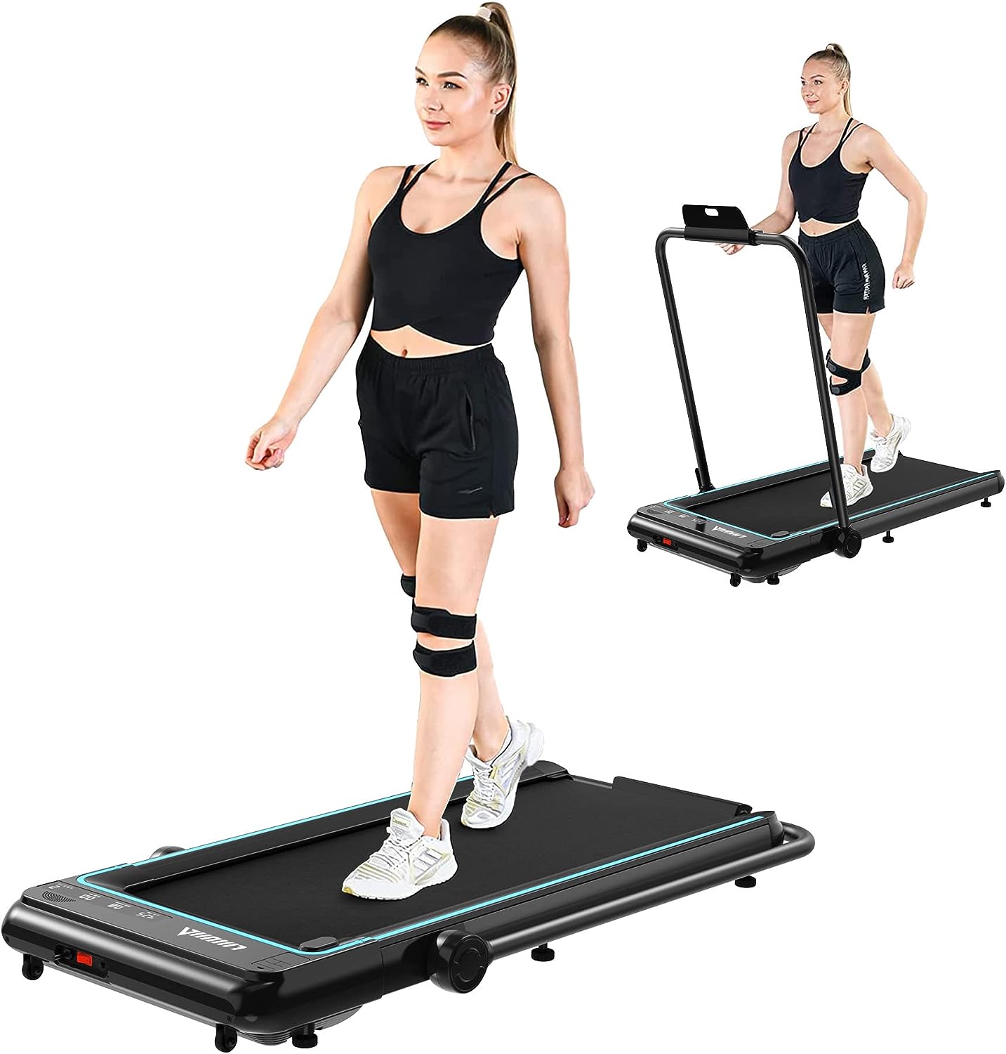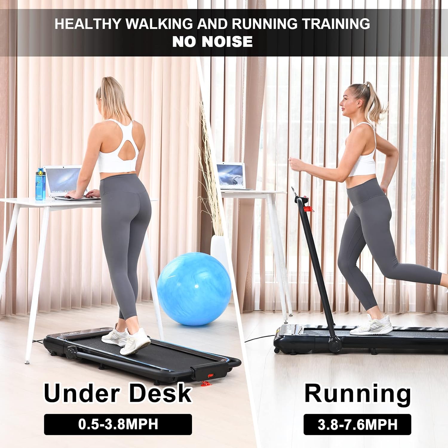 - 2-in-1 Design: The LIJIUJIA Under Desk Treadmill offers users the luxury of two exercise modes; a jogging treadmill and a running treadmill. This versatile scheme allows for an easy switch between a comfortable walking pace (from 0.5MPH to 3.8MPH) under their desk and a more invigorating run (up to 7.6MPH) with the frame up. This flexibility means this treadmill caters to both office exercise and daily running training needs efficiently.