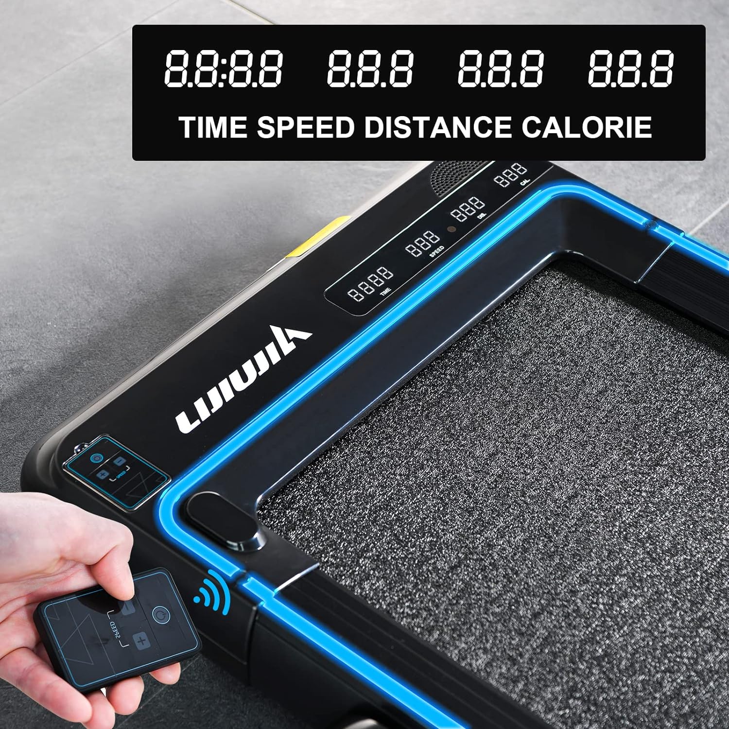- Easy to Operate: In our LIJIUJIA Under Desk Treadmill Review, we found that the machine is designed for effortless operation. The functional control buttons on the console or the handy remote control allow users to seamlessly adjust speed levels and stop operation. Essential workout data like time, speed, distance and calories are clearly displayed on the LED display which aids users in tracking their progress effectively. Even the most technophobic will find the device holder and smart app connectivity options flattering.