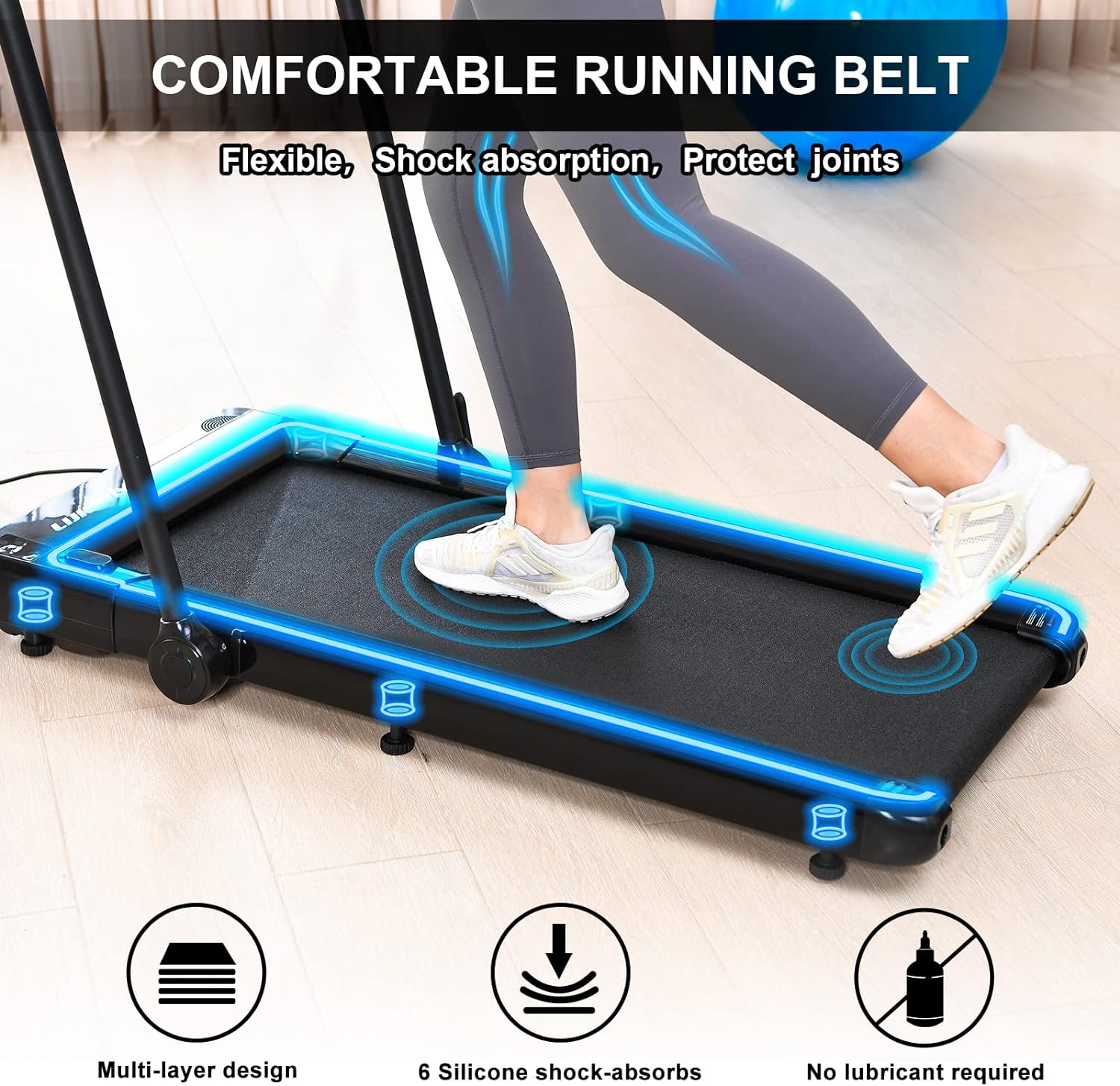 - The 5-layer non-slip textured running belt may offer stability, but it seems to be lacking when it comes to the shock absorption department. It’s probably not the best option for our amazing joints or if you’re looking for that running-on-clouds feeling that more premium treadmills offer.